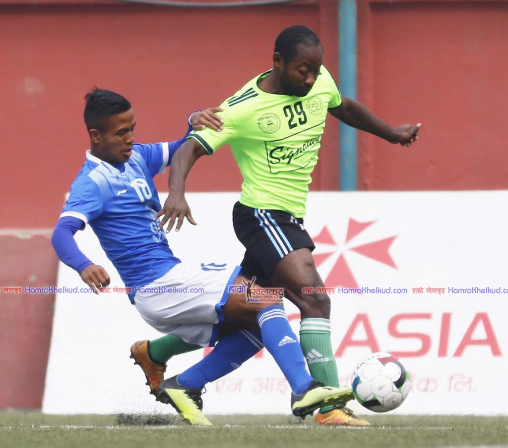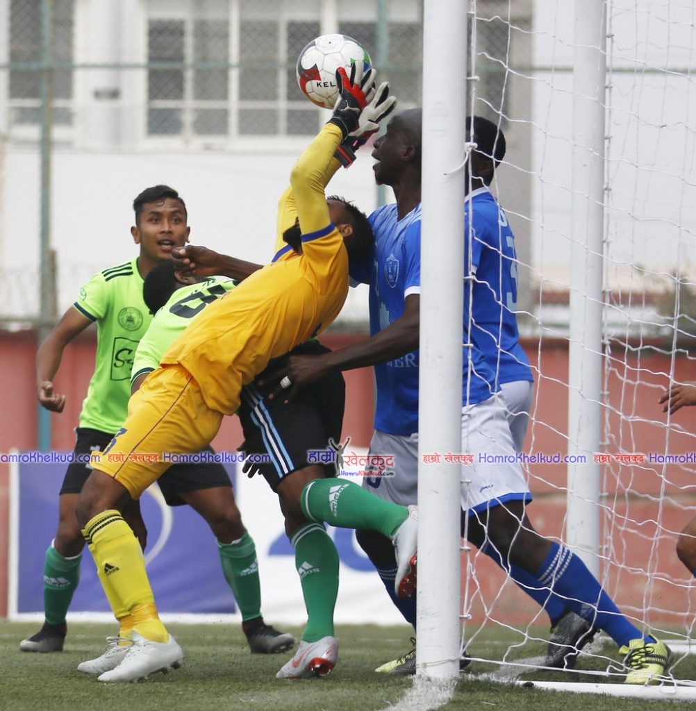 खेलको १५ औं मिनेटमा विशाल राईले करिब ३० यार्ड टाढाबाट प्रहार गरेको फ्रिकिक टिकेन्द्रको हातमा लाग्दै क्रसबारमा लागेर फर्किएको थियो । त्यसपछि पनि मनाङको आक्रमणलाई टिकेन्द्रले रोक्दा पहिलो हाफ गोलरहित बराबरीमा टुंगिएको थियो ।