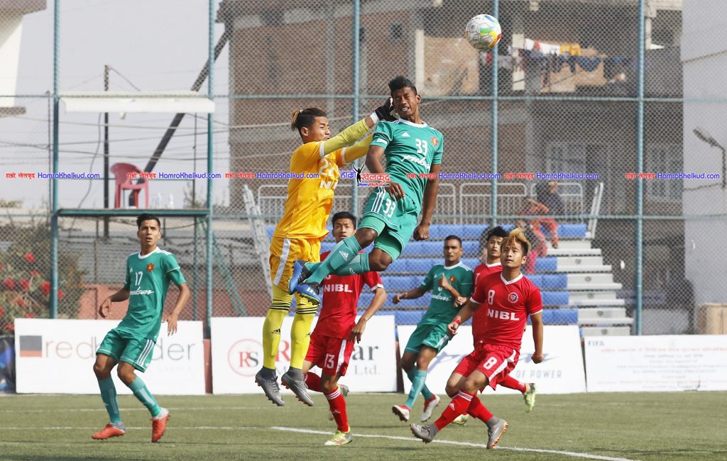पहिलो हाफको १४ औं मिनेटमा टंक बस्नेतले २५ यार्ड टाढाबाट गरेको प्रहारलाई गोलरक्षक देव लिम्बूले डाइभ गर्दै बचाए । २० औं मिनेटमा टंककै प्रहारलाई देवले विफल तुल्याए । ३६ औं मिनेटमा सन्तोष तामाङले पेनाल्टी क्षेत्रबाहिरबाट गरेको प्रहार गोलरक्षक देवले पन्च गरेर बचाए ।