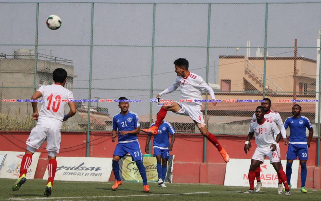 खेलको चौथो मिनेटमा सरस्वतीले आत्मघाती गोलको सहाराले अग्रता बनाएको थियो । मच्छिन्द्रका सन्जय राजवहाकले कर्नरमा आएको बललाई क्लियर गर्न खोज्दा आफ्नै पोष्टमा गोल गरेका थिए । १८ औं मिनेटमा भासाडिया डाइमान्डेको कर्नरमा कप्तान विशाल राईले हेडरमार्फत गोल गर्दै खेल बराबरीमा ल्याए ।