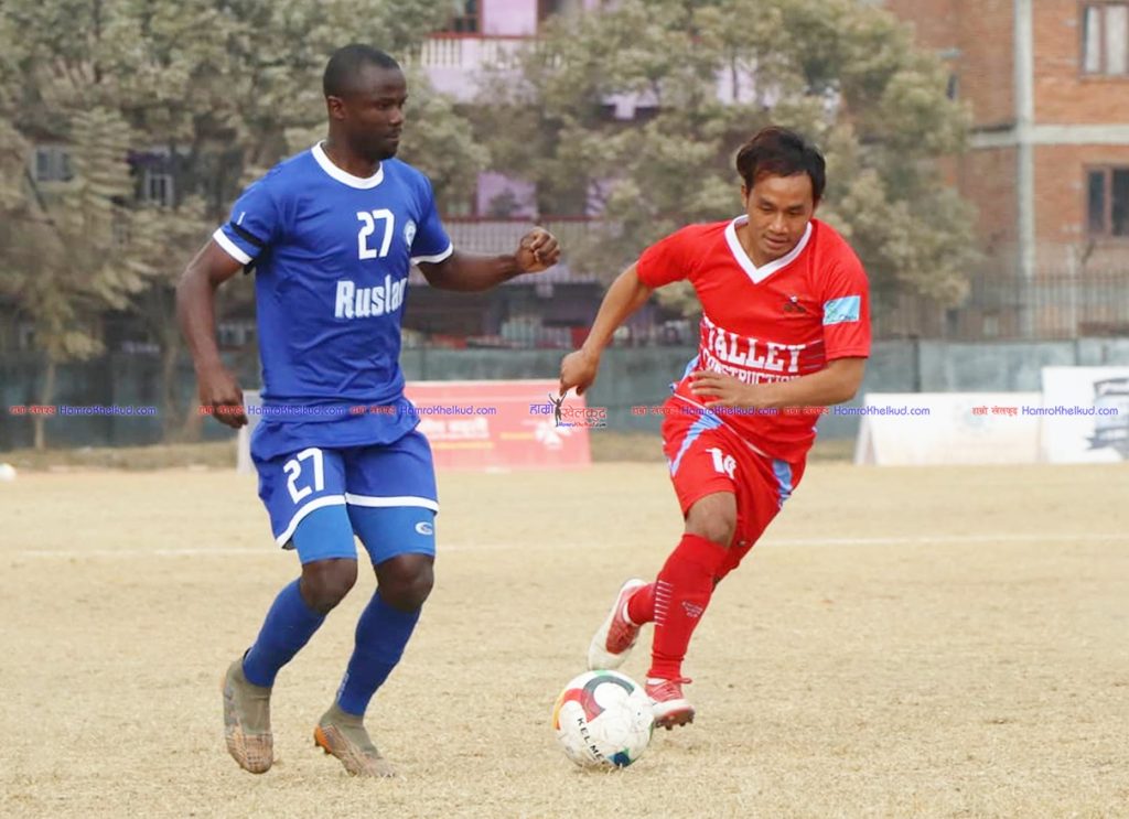 काठमाडौं (हाम्रो खेलकुद) – पल्सर सहिद स्मारक ए डिभिजन लिग फुटबल अन्तर्गत रुस्लान थ्री स्टार क्लब र भ्याली च्यासल युवा क्लबको खेल गोलरहित बराबरीमा टुंगिएको छ ।