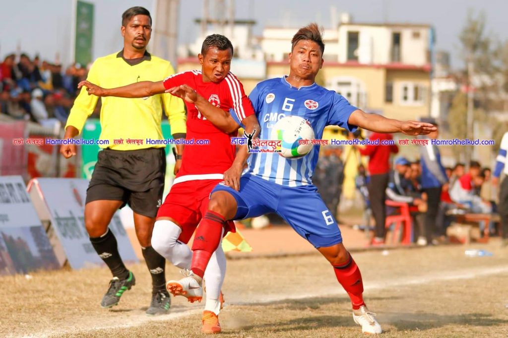 बुधबार धनगढी रंगशालामा भएको निकै प्रतिस्पर्धात्मक खेलको १३ अौं मिनेटमा पुलिसका अभिषेक रिजालको क्रसमा तिर्थ रानाको हेडरले पोस्टको दिशा लिन सकेन । २७ अौं मिनेटमा संकटाले अग्रता लिने सुवर्ण अवसर गुमायो । सुभाष गुरुङको पासमा एलोन म्याक्सवेलले वन भर्सेस वनमा गरेको प्रहारलाई पुलिसका गोलरक्षक शत्रुघन चौधरीले सहजै बचाए ।