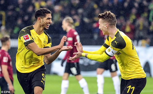 घरेलु मैदान सिग्नल इडुना पार्कमा शनिबार राति भएको खेलमा डर्टमुन्डलाई फराकिलो जित दिलाउन आचरफ हाकिमी, मार्काे रिउस, मारियो गोट्जे, राफायल गुरेरियो र एक्सेल विटसेलले गोल गरे । पराजित टोलीका लागि मार्भिन बाकालर्जले सान्त्वना गोल फर्काए ।