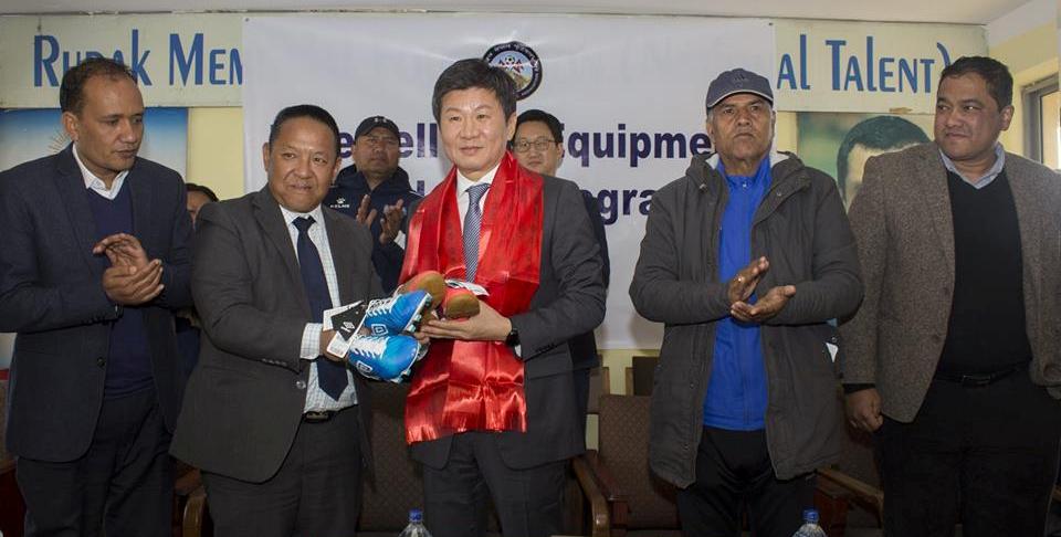 काठमाडौं (हाम्रो खेलकुद) – कोरियाली फुटबल संघले अखिल नेपाल फुटबल संघ (एन्फा) लाई खेल समाग्री सहयोग गरेको छ । अर्को महिना साफ च्याम्पियनसिप खेल्ने तयारीमा रहेको नेपाली महिला टोलीलाई लक्षित गर्दै कोरियाली फुटबल संघले सहयोग गरेको हो ।