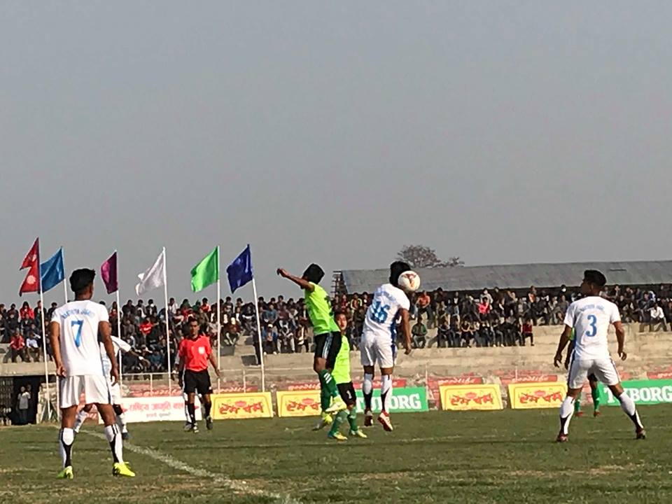 पहिलो दिन शनिबार क्यामरुनको दाफिन्स फुटबल टिमलाई टाइब्रेकरमा हराउँदै मेची नेत्रालय काकरभिट्टा फुटबल ट्रेनिङ सेन्टर अन्तिम चारमा पुगेको थियो । प्रतियोगितामा सोमबार रुस्लान थ्री स्टार क्लब र त्रिभुवन आर्मी क्लबबीच प्रतिस्पर्धा हुनेछ ।