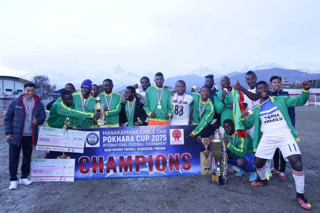 कास्की जिल्ला फुटबल संघको आयोजनामा जारी प्रतियोगिताको विजेता दाउफिन्सले उपाधिसहित ७ लाख ५५ हजार रुपैयाँ प्राप्त गरेको छ । एपीएफले ४ लाखमा चित्त बुझायो । प्रतियोगिताको सर्वोत्कृष्ट खेलाडी एपीएफका राजु नगरकोटीले मोटरसाइकल प्राप्त गरे ।