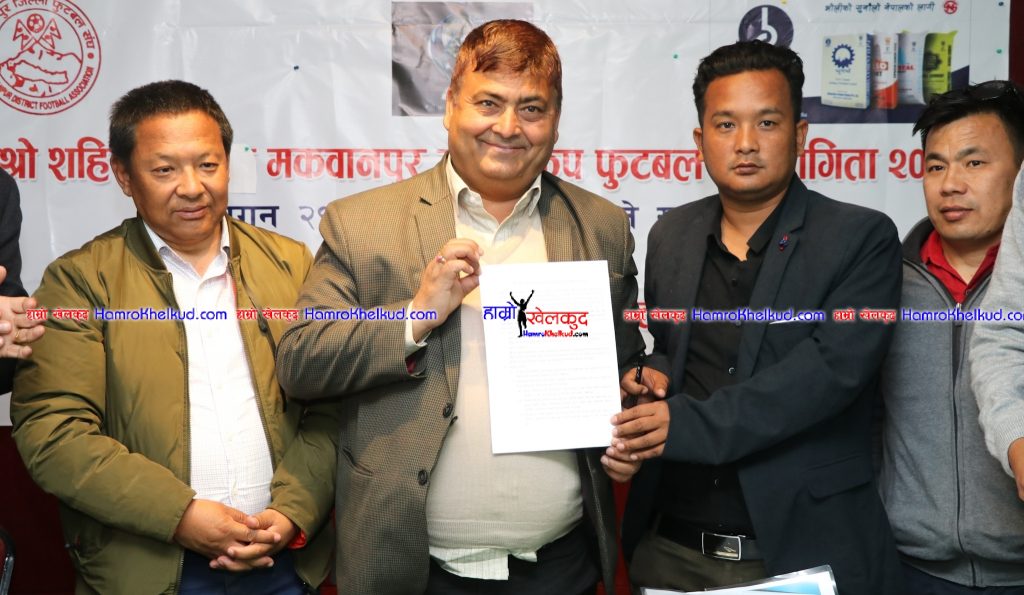 आयोजक मकवानपुर जिल्ला फुटबल संघले बुधबार दोस्रो संस्करणको मकवानपुर गोल्डकपको लागि भूगर्भ सिमेन्टसँग एक वर्षको लागि मुख्य प्रायोजन गरेको हो । सम्झौतामा मकवानपुर जिल्लाका अध्यक्ष टीकाराम लामा र भूगर्भ सिमेन्टका अध्यक्ष पिताम्वर गैरेले हस्ताक्षर गरे । सम्झौताअनुसार भूगर्भ सिमेन्टले प्रतियोगिताका लागि १० लाख रूपैया उपलब्ध गराउने छ । यससँगै प्रतियोगिताको नाम भूगर्भ सहिद स्मृति मकवानपुर गोल्डकप रहने छ ।