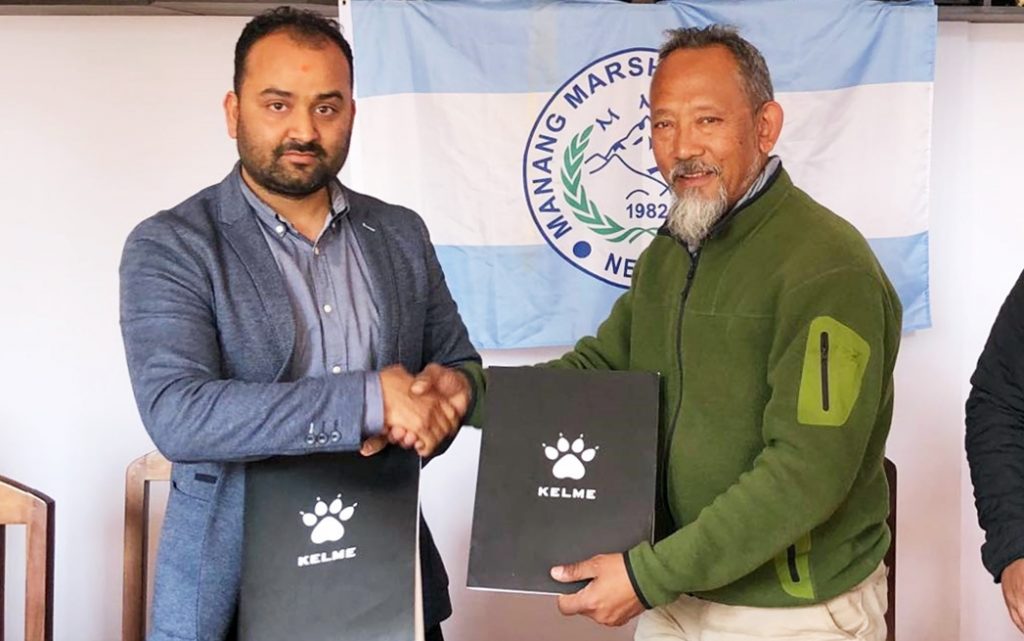 राजधानीमा बुधबार मनाङ मर्स्याङदी क्लबका अध्यक्ष छिमी उर्केन गुरुङ र केल्मीका लागि नेपालको अधिकारिक विक्रेता कामारु ट्रेडिङ प्रालिका निर्देशक प्रदिप न्यौपानेले सम्झौता पत्र आदान प्रदान गरे । सम्झौताअनुसार मनाङले तीन वर्ष अवधिसम्म केल्मीको खेल सामग्री प्रयोग गर्नेछ ।