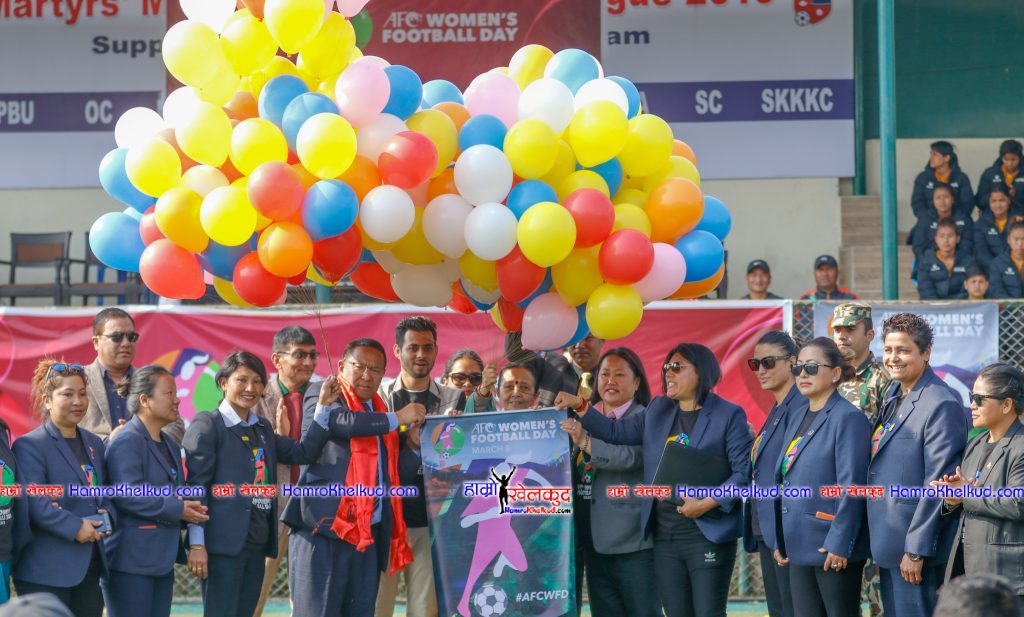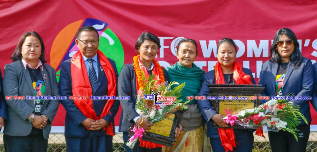 काठमाडौं (हाम्रो खेलकुद) – अखिल नेपाल फुटबल संघ (एन्फा) ले एएफसी महिला फुटबल दिवसको उपलक्ष्यमा नेपाली महिला फुटबलका दुई व्यक्तित्वलाई सम्मान गरेको छ ।