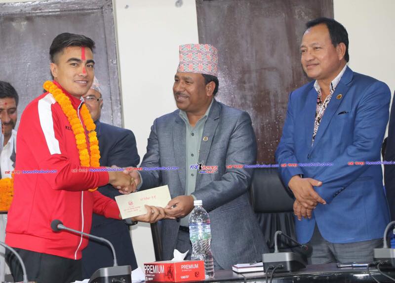 गत वर्ष संयुक्त अरब इमिरेन्ट्स (यूएई) लाई वान डे र टि ट्वान्टी सिरिजमा हराउने नेपाली टोली र सन् २०१६ मा भारतमा भएको १२ औं दक्षिण एसियाली खेलकुद (साग) मा स्वर्ण पदक जित्ने नेपाली युवा फुटबल टोली पुरस्कृत गरिएको हो ।