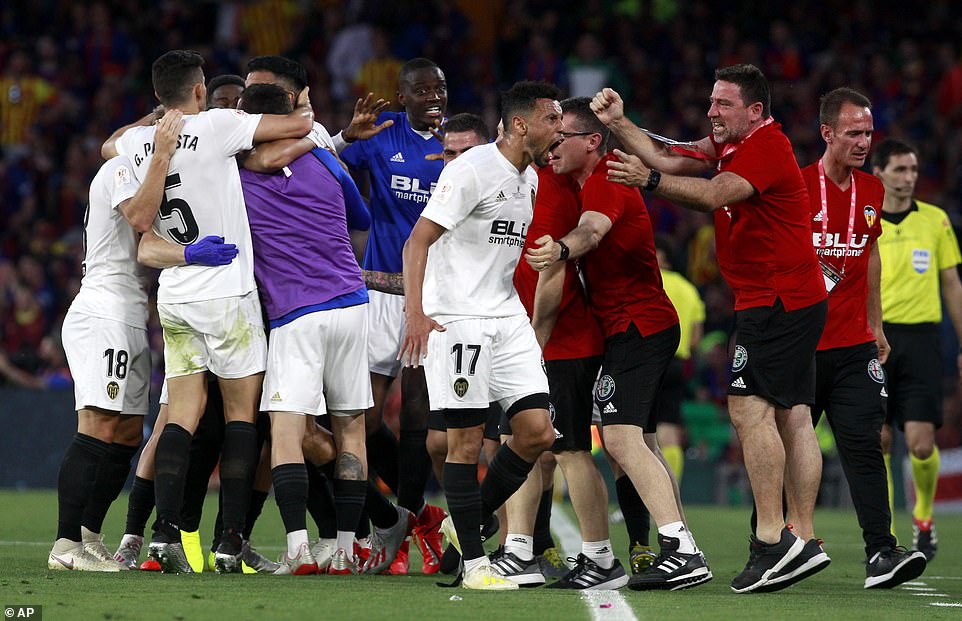 शनिबार राति भएको खेलमा बार्सिलोनालाई २–१ ले स्तब्ध बनाउदै भ्यालेन्सिया कोपा डेल रे च्याम्पियन बनेको हो । सेभियामा भएको खेलमा बार्सिलोनालाई स्तब्ध बनाउन केभिन गेमेरियो र रोड्रिगोले गोल गरे । बार्सिलोनाका कप्तान लियोनल मेस्सीले गोल गरेपनि हार टार्न सकेनन् ।