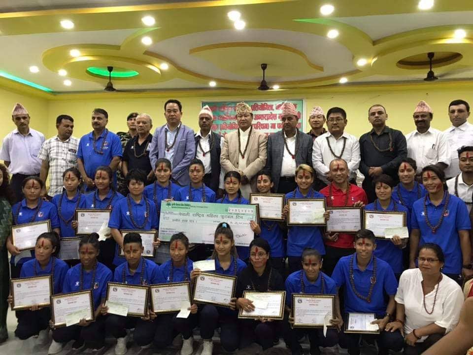 चैतमा विराटनगरमा च्याम्पियनसिपमा नेपाल भारतसँग ३–१ ले पराजित हुँदै दोस्रो भएको थियो । महिला टोलीका खेलाडीलाई प्रदेश सरकारले समान १ लाख रुपैयाँले सम्मान गरेको हो । प्रदेशका मुख्य मन्त्री शेरधन राईले खेलाडी तथा अफिसियललाई सम्मान गरेका थिए । उपाधि जितेको खण्डमा जनही २ लाख रुपैयाँ दिने प्रदेश सरकारले घोषणा गरेको थियो ।