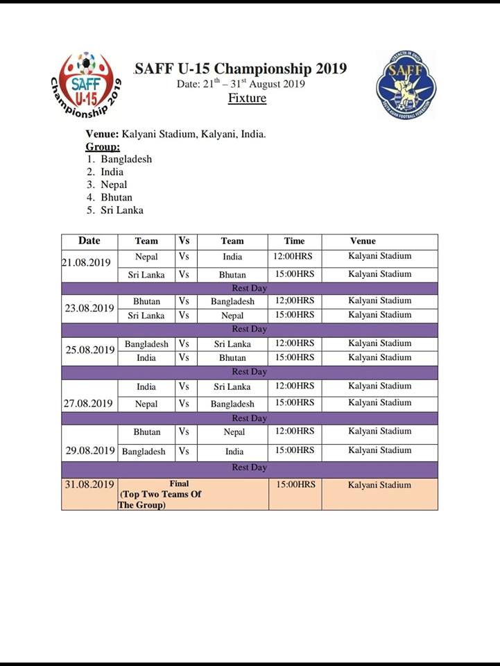 नेपालले दोस्रा खेल अगस्ट २३ मा श्रीलंकासँग, तेस्रो खेल अगस्ट २७ मा बंगलादेशसँग र राउन्ड रोविनको अन्तिम खेल असस्ट २९ मा भुटानसँग खेल्नेछ । सबैले सबैसँग खेलेपछि अंक तालिकाका शीर्ष दुई टोलीले उपाधिका लागि प्रतिस्पर्धा गर्नेछन् ।