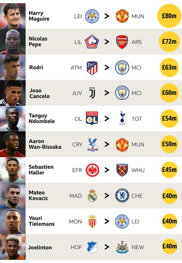 गत सिजनबाट सुरु भएको नयाँ नियम अनुसार सिजन सुरु हुनुअघि नै टोलीको खेलाडी किन्ने प्रक्रिया पूरा हुनुपर्ने प्रावधान रहेको छ । जस अनुसार प्रिमियर लिगका क्लबहरुले खेलाडी अनुबन्धनमा १.४१ बिलियन पाउण्ड खर्च गरेका छन् । यसक्रममा आर्सनलले सर्वाधिक १ सय ५५ मिलियन पाउण्ड खर्चेको छ । खेलाडी अनुबन्धनमा क्लबहरुले सर्वाधिक रकम तिरेका १० खेलाडी यसप्रकार छन् :