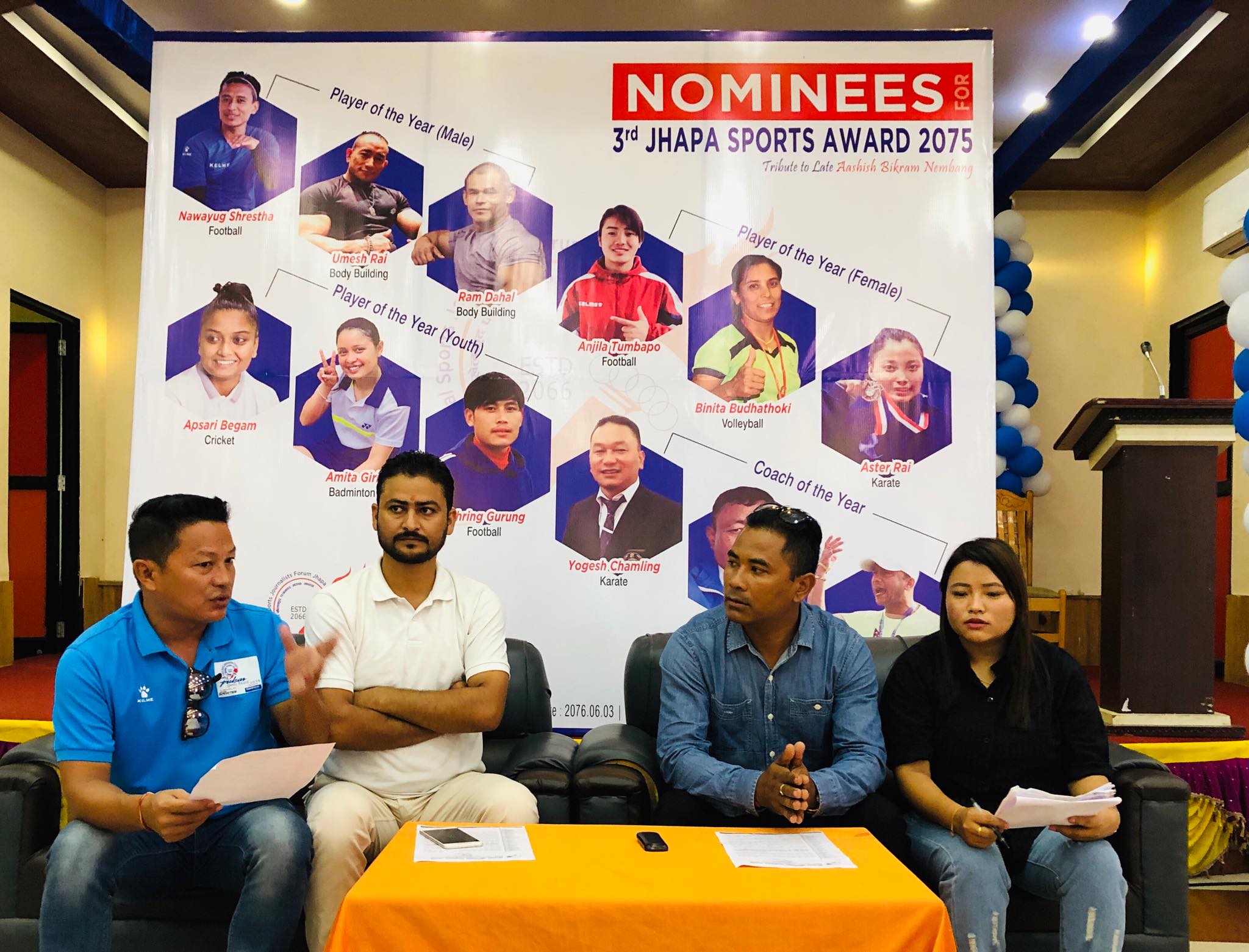 वर्ष उत्कृष्ट पुरुष खेलाडीले मोटरसाइकल, वर्षकी उत्कृष्ट महिला खेलाडीले स्कुटर प्राप्त गर्नेछन् । वर्षका उत्कृष्ट युवा खेलाडी र प्रशिक्षकले समान २५ हजार रुपैयाँ प्राप्त गर्ने झापा मञ्चका अध्यक्ष हिमाल खरेलले जानकारी दिए ।