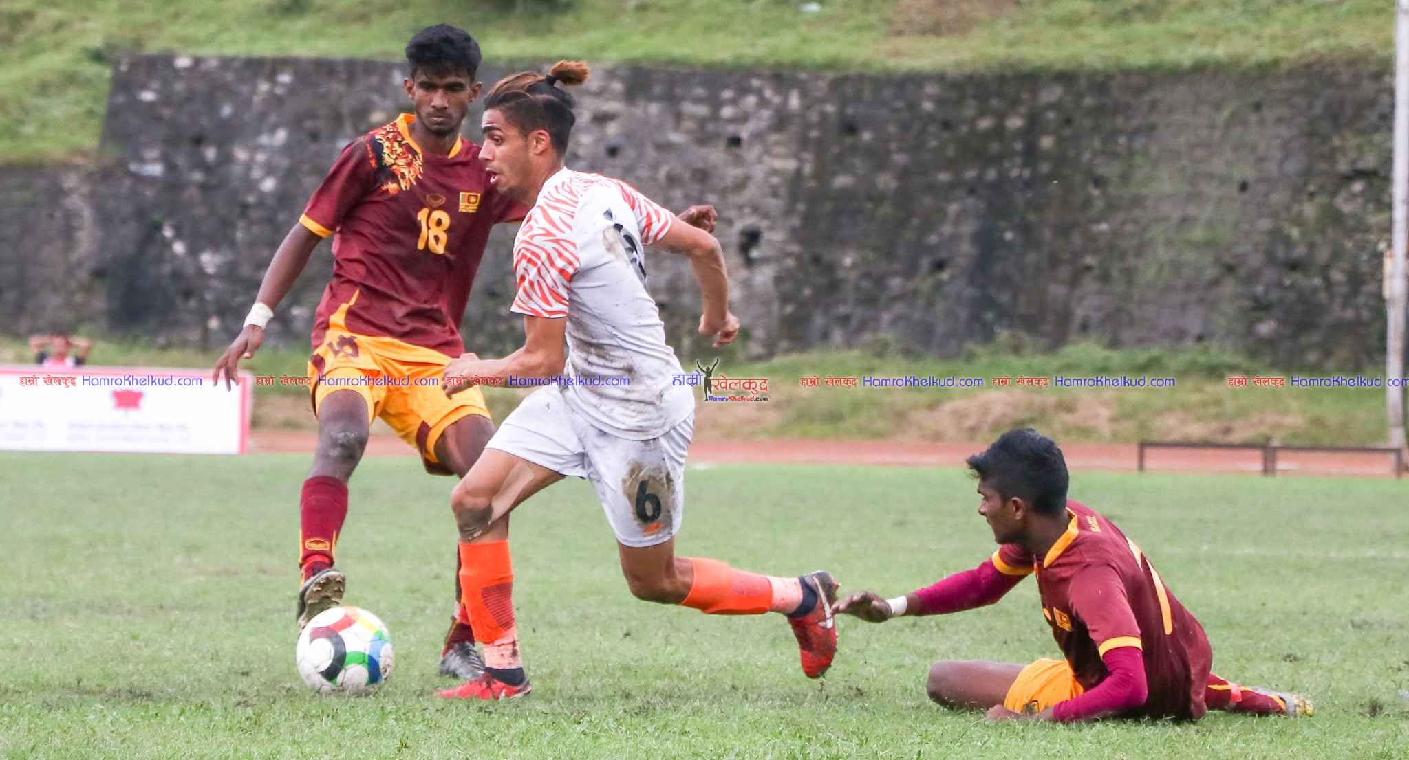 काठमाडौं (हाम्रो खेलकुद)– भारत साफ यू १८ च्याम्पियनसिप फुटबलको सेमिफाइनलमा पुगेको छ । सशस्त्र प्रहरी बलको हलचोक मैदानमा जारी च्याम्पियनसिपअन्तर्गत समूह चरणको अन्तिम खेलमा श्रीलंकालाई ३–० ले हराउँदै भारत समूह ‘बी’ को विजेताका रुपमा अघि बढेको हो ।