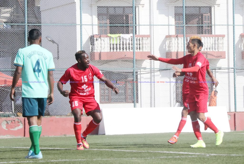 त्यसको दुई मिनेटपछि नै विजयको प्रहार क्रसबारमा लाग्दै फर्किएपछि रिबाउन्ड बलमा ड्याडीकाे हेडर गाेलरक्षक प्रदीप भण्डारीले सहजै बचाईदिए । ६५ औं मिनेटमा सरस्वतीका कृष्ण रानाभाटकाे प्रहार बाहिरिदा बराबरीबाट चुक्याे ।