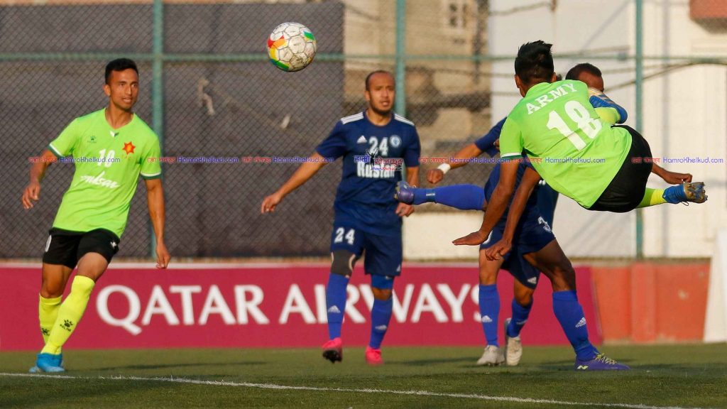 काठमाडौं (हाम्रो खेलकुद) – त्रिभुवन आर्मी क्लबले कतार एयरवेज सहिद स्मारक ए डिभिजन लिग अन्तर्गत बुधबार रुस्लान थ्री स्टारलाई २-० ले पराजित गरेको छ ।