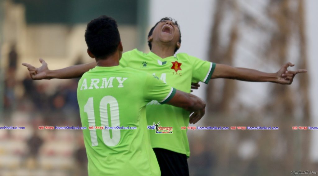 थ्री स्टारविरुद्ध पहिलो हाफमा दवाव कायम गरेपनि गोल निस्केन । दोस्रो हाफको ५४ औं मिनेटमा कप्तान भरत खवासको क्रसमा नवयुग श्रेष्ठले दर्शनीय गोल गर्दै आर्मीलाई अग्रता दिलाए । खेलमा अर्को कथा लेखिन बाँकी नै थियो । खेल सकिन ११ मिनेट बाँकी रहँदा सन्तोषले मैदानको बायाँ पोष्टको झन्डै २५ यार्ड टाढाबाट फ्रिकिक प्रहार गरे । थ्री स्टारका गोलकिपरले चालै नपाउँदै फ्रिकिकबाट बल गोलमा परिणत भएको थियो । गोल भएलगत्तै उनले जहाँको त्यहीं टक्क उभिएर दुवै हातले कान थुने । त्यसपछि अन्य मैदान र बेन्चका खेलाडीले उनलाई समाते । सबैले बधाई साटासाट गरेपछि पुन: उनले उभिएर आफ्नो पुरानै कान बन्द गर्ने शैली दोहोर्याए ।