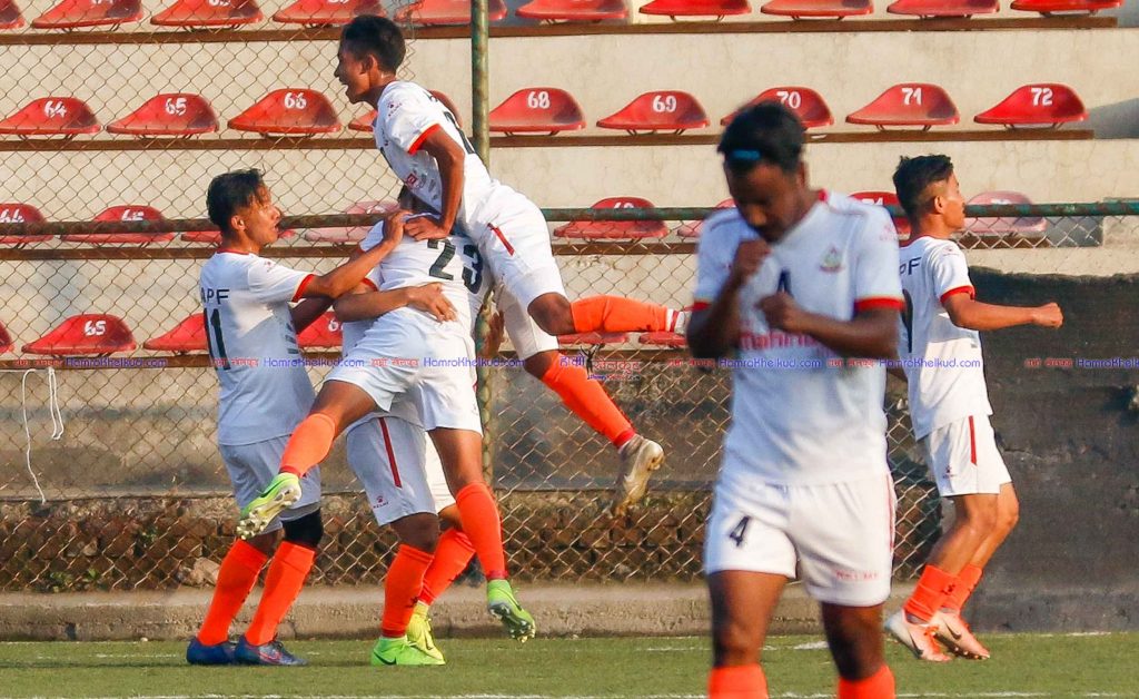 काठमाडौं (हाम्रो खेलकुद) – नेपाल एपीएफ क्लबले कतार एयरवेज सहिद स्मारक ए डिभिजन लिगमा पहिलो जित दर्ता गरेको छ ।