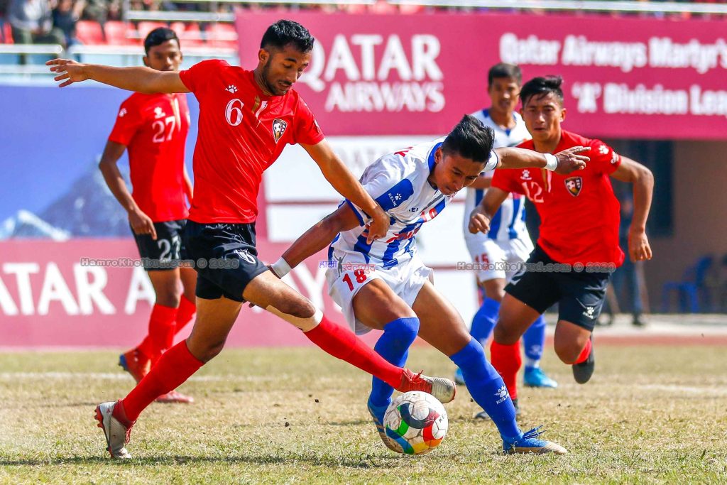 दशरथ रंगशालामा जारी खेलको पहिलो हाफ गोलरहित बराबरीमा टुंगिएको छ । खेलकाे चाैथाे मिनेटमा नवयुग श्रेष्ठको सशक्त प्रहार पाेस्टबाट थाेरै बाहिरियाे । १५ औं मिनेटमा भरत खवासको हेडर गाेलरक्षक अजित प्रजापतिले बचाए । लगत्तै जर्जप्रिन्स कार्कीकाे प्रहारलाई गाेलरक्षकले मुस्किलले बचाए ।