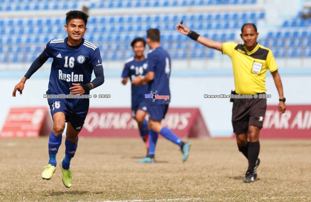काठमाडौं (हाम्रो खेलकुद) – युवा फरवार्ड संजोक राईले दोस्रो हाफमा ह्याट्रिक प्रहार गरेपछि रुस्लान थ्री स्टार क्लबले कतार एयरवेज सहिद स्मारक ए डिभिजन लिगमा सानदार जित हासिल गरेको छ ।