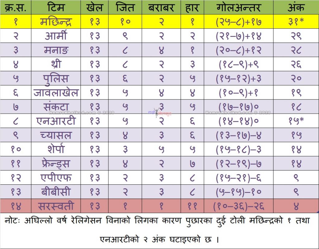 ९३. पुर्णबहादुर श्रेष्ठ (सरस्वती) ओजि – १ गोल