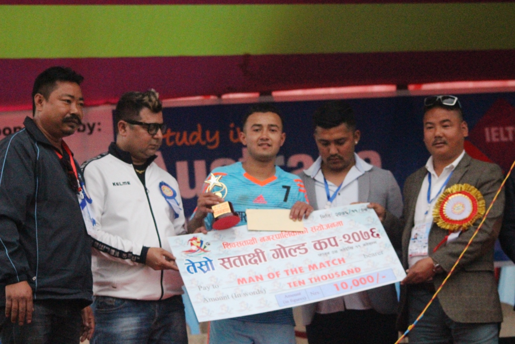 खेलको म्यान अफ दि म्याच बनेका विजेता टोलीका मनिषले १० हजार रुपैयाँ प्राप्त गरेका छन् । तेस्रो संस्करणको सताक्षी गोल्डकपमा मनाङ मस्र्याङ्दी क्लबसँगै रुस्लान थ्री स्टार क्लब, त्रिभुवन आर्मी क्लब, लिग विजेता सानमिगेल मछिन्द्र क्लब, गोर्खा ब्वाइज फुटबल क्लब, बेलबारी फुटबल क्लब मोरङ, आयोजक टिम र भारत दार्जिलिङको एमएफसी क्लबको सहभागिता रहेको छ ।