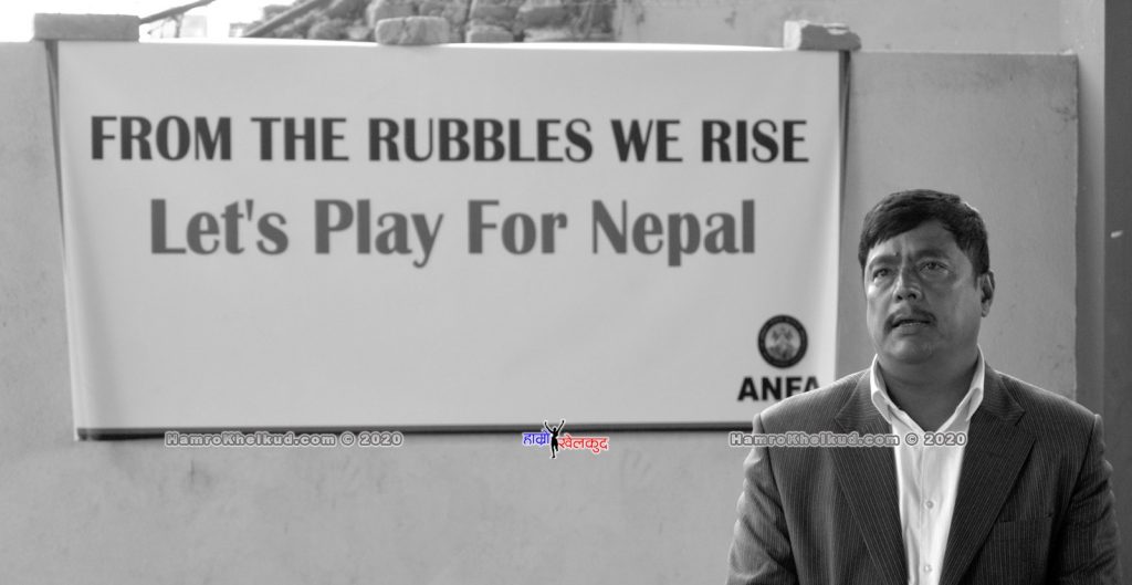 २०७२ वैशाख १२ र २९ गतेको विनाशकारी भूकम्प जाँदा उनी कार्यवहाक अध्यक्ष नै थिए । मानसिक रुपमा सबै कमजोर भएको अवस्थामा पनि उनले यू १४ टोलीलाई एएफसीको प्रतियोगिता खेल्न ताजकिस्तान पठाउने चाँजो मिलाएर सफल नेतृत्वको उदाहरण प्रस्तुत गरेका थिए । उनको भनाइ थियो, खेलकुद नै यो कठिन समयमा देशलाई एकतावद्ध पार्ने कडी हो । अहिले कोरोनाले विश्व आक्रान्त छ । नेपाल पनि त्यसले अछुतो छैन । अझ त्यसमाथि एन्फा आन्तरिक विवादका कारण गतिहिन जस्तो भएको छ । यस्तो कठीन अवस्थामा नेपाली फुटबलमा उनी जस्तो सुझबुझपूर्ण नेतृत्व र संकटमोचकको अभाव झनै खड्किएको छ ।