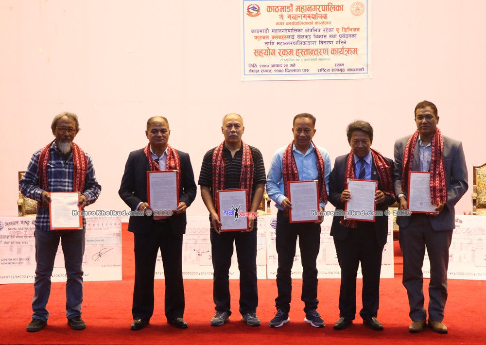 काठमाडौं (हाम्रो खेलकुद) – काठमाडौं महानगरपालिकाले काठमाडौं जिल्लाका ‘ए’ डिभिजन क्लबलाई सहयोग रकम हस्तान्तरण गरेको छ ।