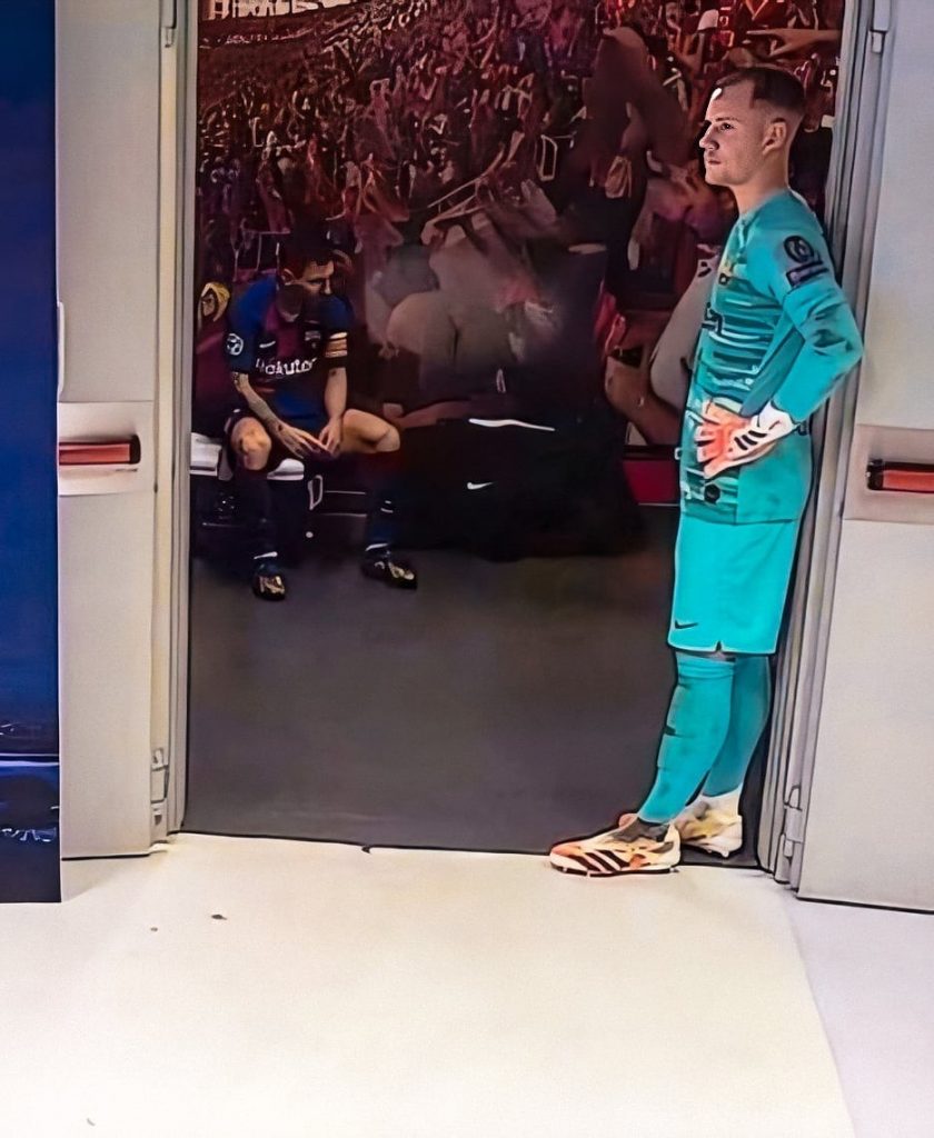 तस्बिरमा टोलीका गोलरक्षक मार्क आन्देर टेर स्टेगेनसँग दुरी कायम गरेर बसेका थिए । मेस्सी टोलाएर बेन्चमा बस्दा स्टेगन ढोकामा उभिएका थिए । सन् २००६/०७ यता पहिलो पटक मेस्सी उपाधि विहिन भएका छन् । यो हारको पिडा भुलाउन मेस्सी र उनको टोलीलाई केहि समय पक्कै लाग्नेछ । अझ पछिल्लो खेलको हारले असफलताको पिडालाई थप बल्झाएको छ ।