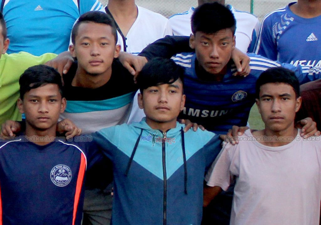 यू-१६ एकेडेमीमा : सेसेहाङ आङदेम्बे र राजन गुरुङ (माथि), राजीव लोप्चन, अभिषेक रिजाल र एरिक विष्ट (तल)