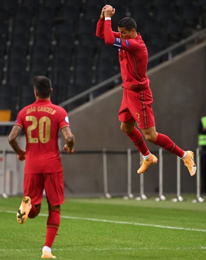 रोनाल्डोले झन्डै २५ यार्ड टाढा प्राप्त फ्रिकिकलाई सिधै गोलमा परिणत गरेका थिए । स्वीडेनका डिफेन्डर गुस्टाभ स्वेन्सनले जोआओ मोउटिन्होलाई लडाएपछि प्राप्त फ्रिकिकमा रोनाल्डोको प्रहार गोलरक्षक रोबिन ओल्सनले बचाउने कुनै अवसर नै पाएनन् । रोनाल्डोले पोर्चुगलको जर्सीमा नवौं फ्रिकिक गोल गर्दै १ सय गोल पूरा गरे ।