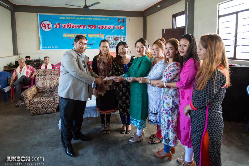 पोखराका गुरुङ युवतीहरुको समुह गुरुङ्सेनी गल्सले सहारा क्लबद्वारा संचालित सहारा एकेडेमीलाई नगद तिस हजार पाँच रुपैयाँ सहयोग गरेको छ ।