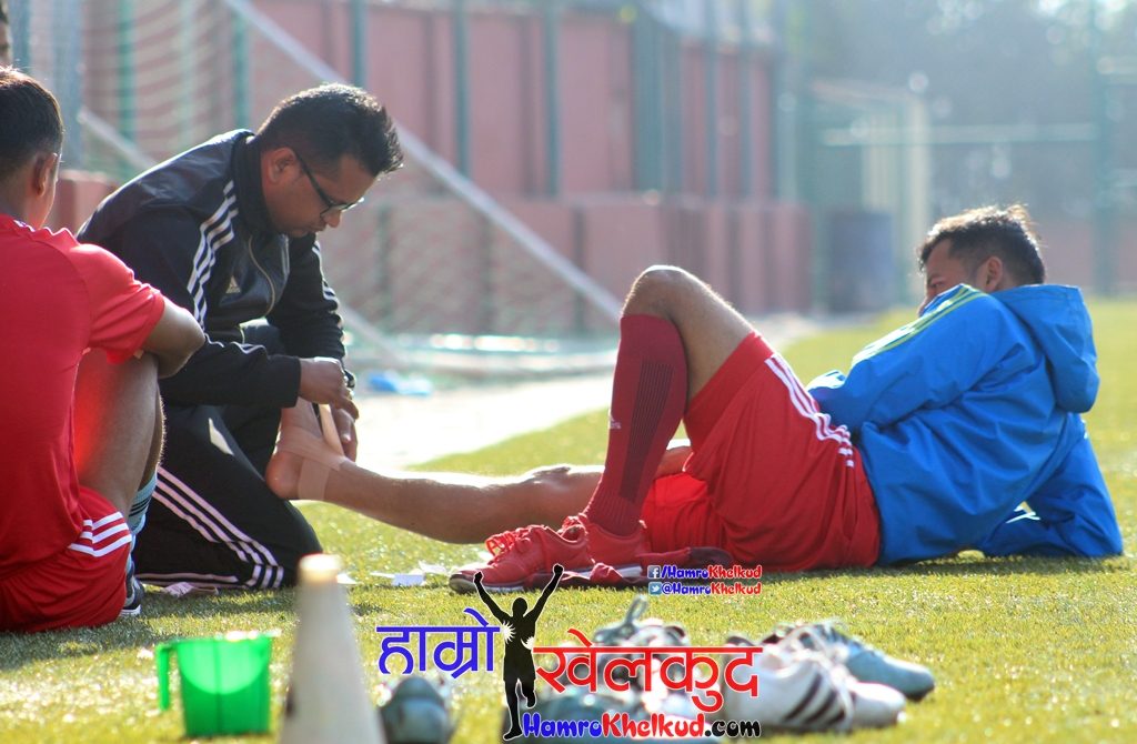 बंगलादेशविरुद्ध मैत्रीपूर्ण खेल खेलेका ३५ खेलाडीमा विक्रम लामाले भने शल्यक्रिया गर्नुपर्ने भएपछि यसअघि नै उपलब्ध नरहने जानकारी दिएका थिए । प्रशिक्षणमा सहभागी २४ नयाँ खेलाडीलाई पनि महर्जनले पहिलो दिनदेखि नै पुरानो टोलीसँग मिसाएर प्रशिक्षण गराए । पहिलो दिन प्रशिक्षणमा विमल घर्तीमगर, विराज महर्जन, आदित्य चौधरी, सन्जोग राई, लगायत खेलाडीले अघिल्लो महिना बंगलादेशको सामना गरेको टोलीसँग प्रशिक्षण गरेका थिए ।