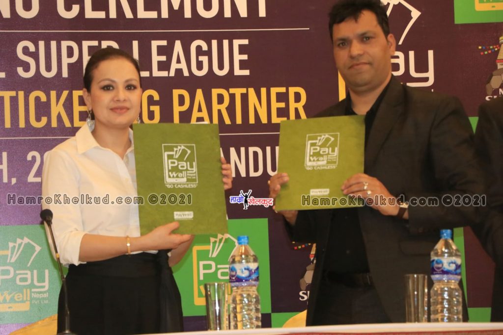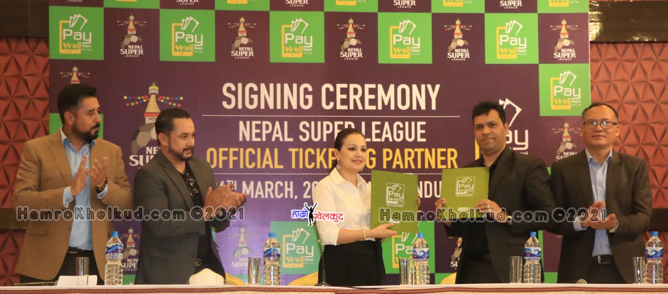 नेपाल स्पोर्टस् एन्ड इभेन्ट म्यानेजमेन्ट अध्यक्ष आश्रयता कार्की चौधरी र पे वेलका कार्यकारी अध्यक्ष भिम प्रसाद तिमिल्सिनाले सम्झौता पत्रमा हस्ताक्षर गर्दै आदन प्रदान गरेका थिए । सम्झौतासँगै लिगको सम्पूर्ण टिकट बिक्री पे वेलबाट हुनेछ ।