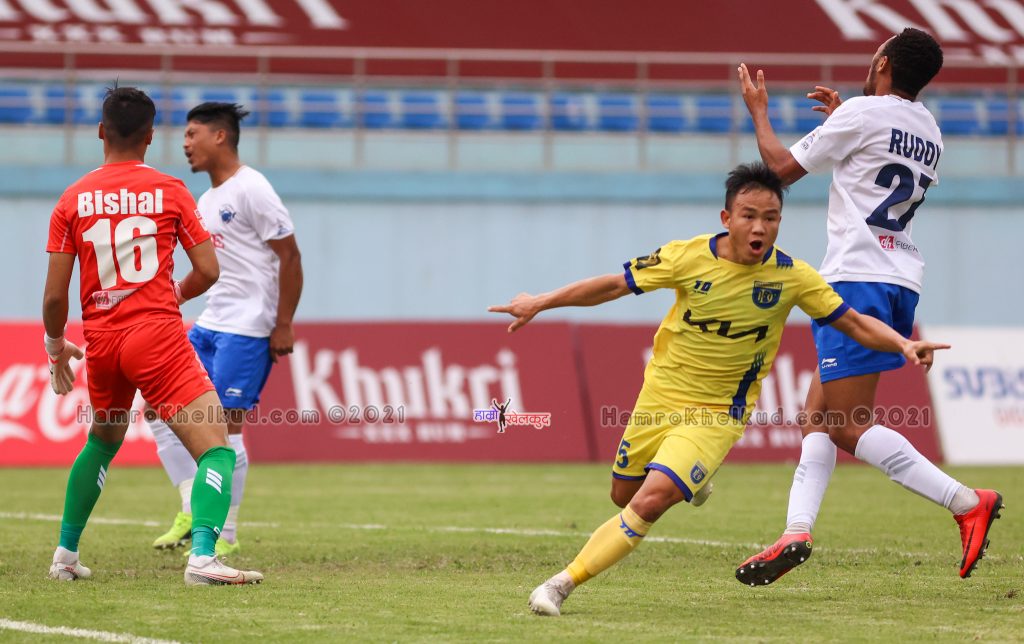 ३२औं मिनेटमा जर्जप्रिन्स कार्कीले काउन्टर अट्याकमा पेनाल्टी बक्समा दुई डिफेन्डरलाई बिट गर्दै गरेको प्रहार दोस्रो बारबाट थोरै बाहिरियो । ३६औं मिनेटमा जर्जप्रिन्स कार्कीको झन्डै ३० यार्ड टाढाको शक्तिशाली प्रहार क्रसबारमा लागेर बाहिरिदा चितवन अग्रता लिनबाट चुक्यो । ५१औं मिनेटमा सिमन्त थापाको प्रहारलाई गोलरक्षक किरण चेम्जोङले नियन्त्रणमा लिए ।