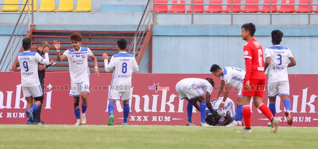 त्रिपुरेश्वरस्थित दशरथ रंगशालामा मंगलबार भएको खेलको चौथो मिनेटमा तेज तामाङको क्रस पासलाई स्टेफन विनोङ समिरको हेडरलाई गोलरक्षक विशाल श्रेष्ठले गोललाइनबाट बचाउदा अग्रता लिन चुकेको काठमाडौंले पाँचौ मिनेटमा अग्रता लिएको हो ।