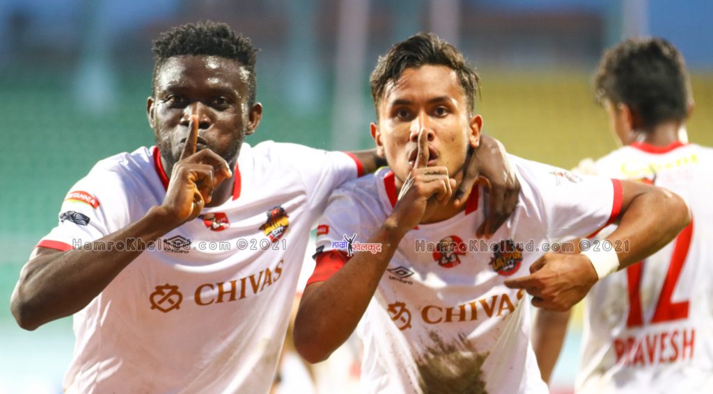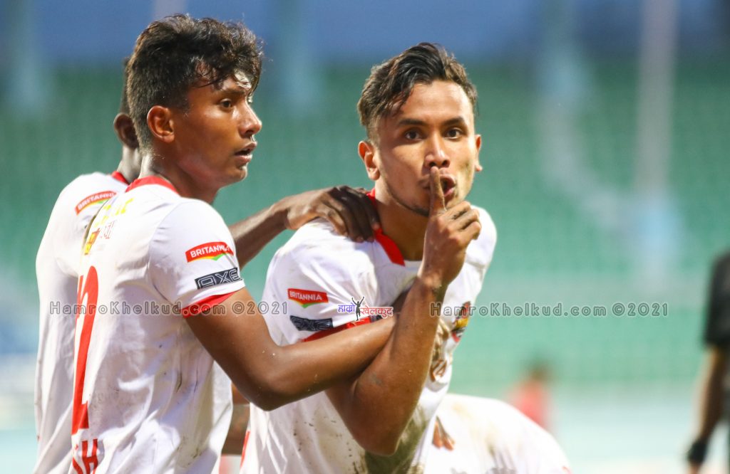 १६औं मिनेटमा डोना थापाको गल्तीको फाइदा उठाउँदै सुमन लामाको प्रहार फितलो बन्दा गोलक्षक अर्पण कार्कीले सहजै नियन्त्रणमा लिए ।२५औं मिनेटमा डोना थापाको पासमा नुर्लान नोभ्रुजोभ जाहिदको पेनाल्टी बक्सभित्रको प्रहारलाई गोलरक्षक विशाल श्रेष्ठले पञ्च गर्दै बचाए । रिवाउन्डमा विमल रानाको प्रहार पोस्ट नजिकैबाट बाहिरियो ।