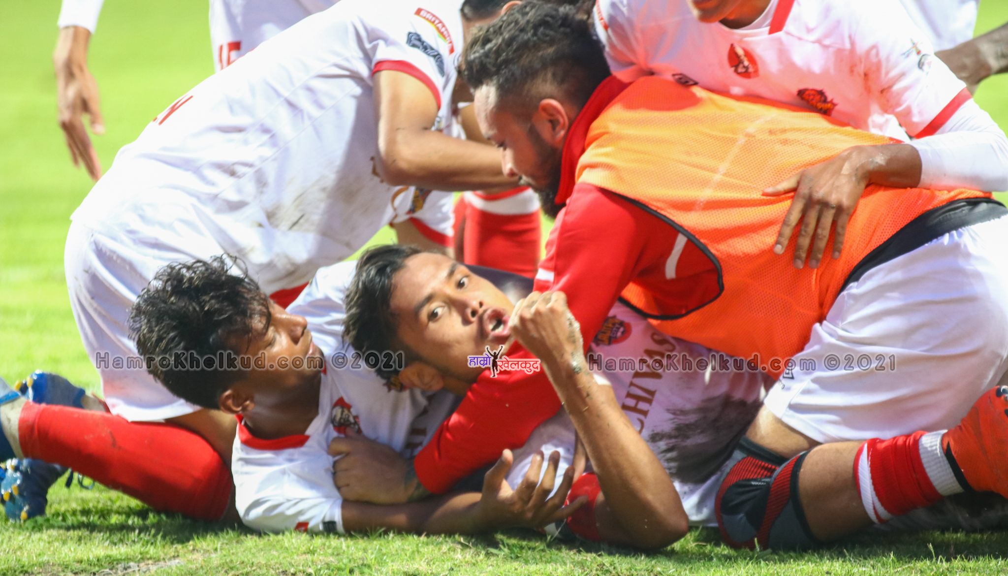४९औं मिनेटमा डिफेन्डर विराज महर्जन र गोलरक्षक विशाल श्रेष्ठबीच तालमेल नमिल्दा विराजले दिएको ब्याकपासको फाइदा ललितपुरले उठाउन सकेन । विमल रानाले प्रयास गरेपनि विशालले जोगाए । ६१औं मिनेटमा कप्तान तथा मार्की खेलाडी अन्जन विष्टले गोल गर्दै ललितपुरलाई १–० को अग्रता दिलाए । पेनाल्टी एरिया नजिक तनी चार सटिक पास खेल्दै मिक्चेन तामाङले दिएको क्रस पासलाई अन्जनले डाइभिङ हेडरमार्फत गोल गर्न सफल भएका हुन् ।