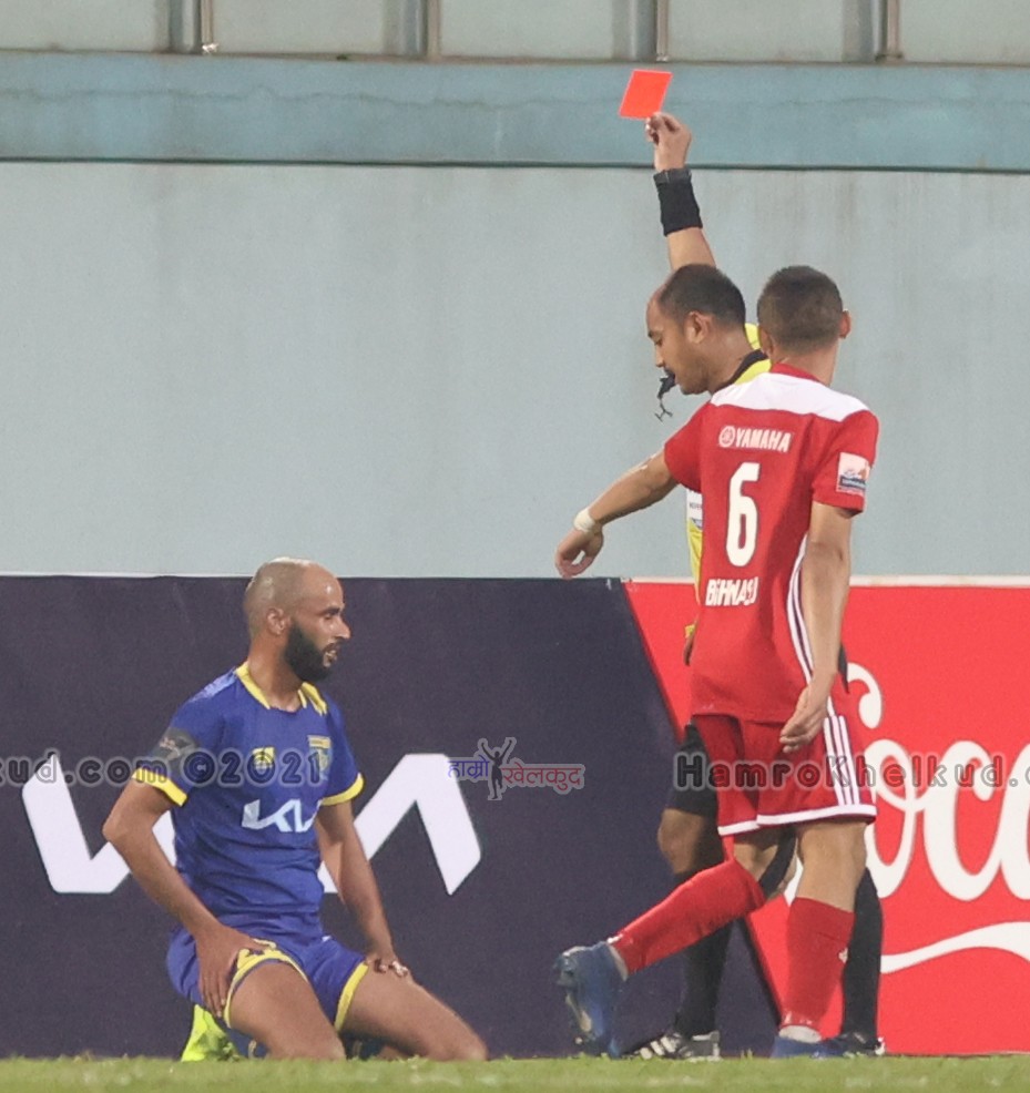 २. राकेश कार्की (काठमाडौं अफिसियल) सिधै रातो कार्ड (विराटनगरविरुद्ध)