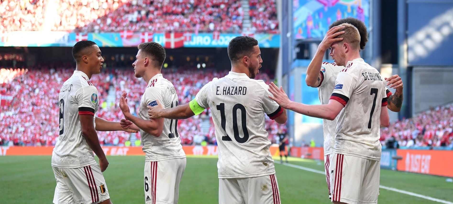 बेल्जियमले पहिलो हाफमा गोलको केहि अवसर सिर्जना गरेपनि त्यसको सदुपयोग गर्न सकेन । डेनमार्कले बेल्जियमलाई बल पोसेसनमा रहंदा पनि निरन्तर दबाब दिँदा टोलीले गोल फर्काउन सकेको थिएन । तर दोस्रो हाफमा प्रशिक्षक रोबर्टो मार्टिनेजले मिडफिल्डर डे ब्रुएनलाई मैदान प्रवेश गराउँदै खेलको रुप नै बदले ।