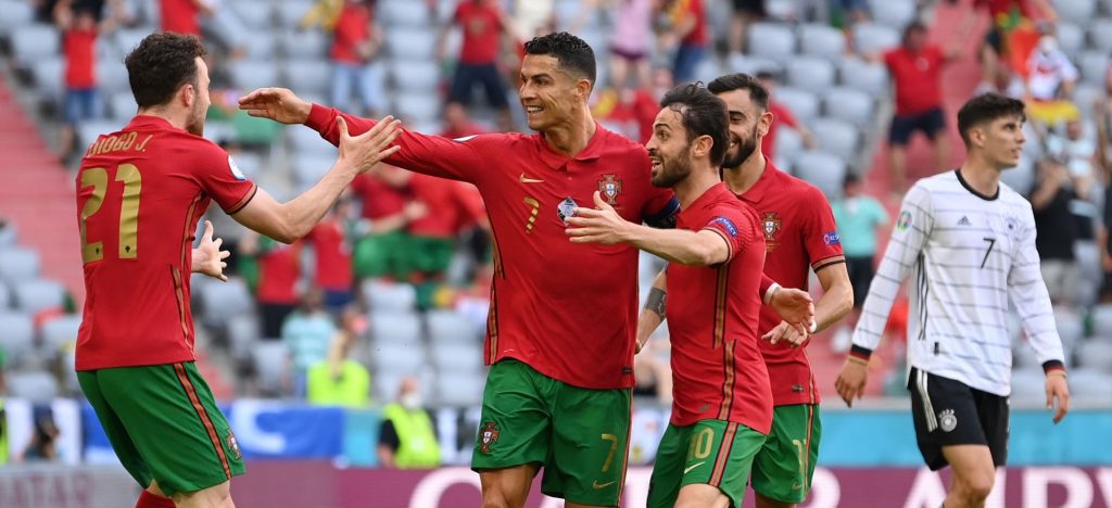 १४ औं मिनेटमा पोर्चुगलले कप्तान क्रिस्टियानो रोनाल्डोको गोलमा अग्रता लियो । काउन्टर अट्याकमा सुन्दर मुभ बनाएको पोर्चुगलका लागि डिओगो जोटाले पेनाल्टी क्षेत्र भित्रबाट अनमार्क रहेका रोनाल्डोलाई पास दिएपछि रोनाल्डोले खाली पोस्टमा गोल गरेका थिए । त्यसअघि बर्नार्डो सिल्भाले जोटालाई भेट्न सुन्दर क्रस फिल्ड पास दिएका थिए ।