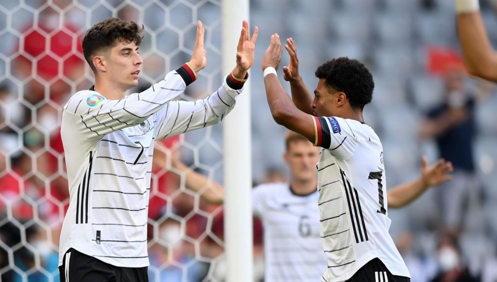 खेलको ३५ औं मिनेटमा जर्मनी खेल बराबर गर्न सफल भयो । रोबिन गोसेन्सले पेनाल्टी क्षेत्रको बायाँ भागबाट गरेको क्रस डियासलाई लाग्दै गोल भएको थियो । हाभर्ट्जलाई रोक्ने प्रयासमा डियासको क्लिअरेन्स गोल भएको थियो । त्यसको ३ मिनेटपछि नै जर्मनीले आत्मघाती गोलमा अग्रता लियो । जोशुवा किम्मिखको क्रसमा राफेल गुरेरोको क्लिअरेन्स गर्ने प्रयास आफ्नै पोस्टमा छिरेपछि पोर्चुगल पछि परेको थियो ।