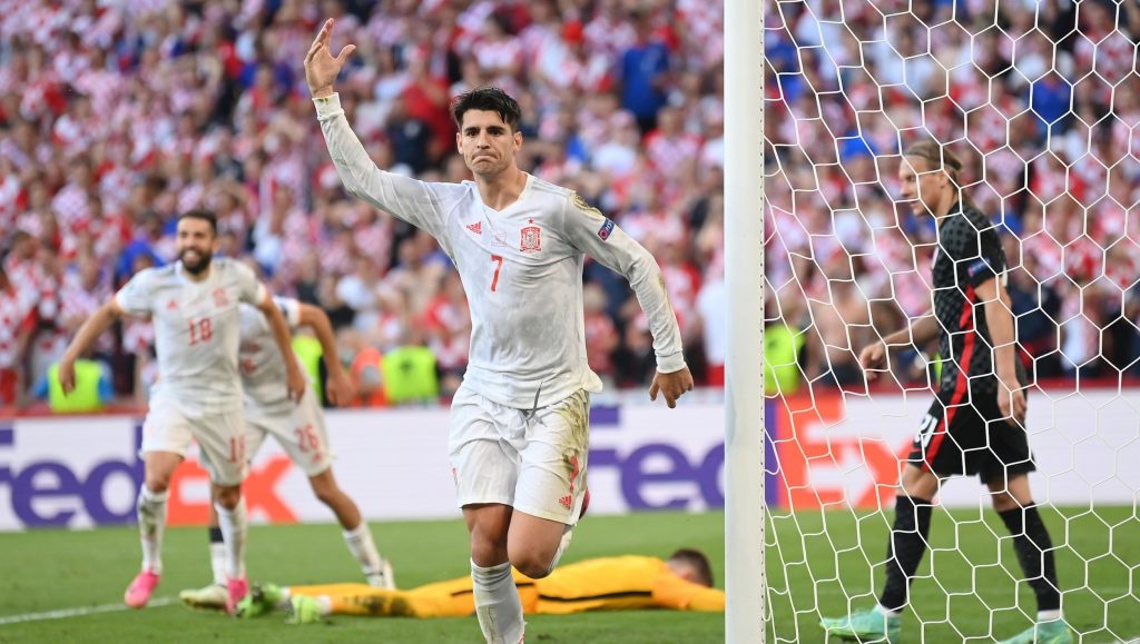 खेलको १ सयौं मिनेटमा मोराटाले सुन्दर गोल गर्दै स्पेनलाई पुन: अग्रता दिलाए । ड्यानी ओल्मोले दायाँ विंगबाट दिएको क्रस डिफेन्डरले भेट्न नसक्दा मोराटाले पहिलो टचमा बललाई नियन्त्रणमा राख्दै हाफ भलीमा सुन्दर गोल गरे । उनको शक्तिशाली प्रहारलाई लिभाकोभिचले जोगाउने कुनै अवसर नै पाएनन् ।