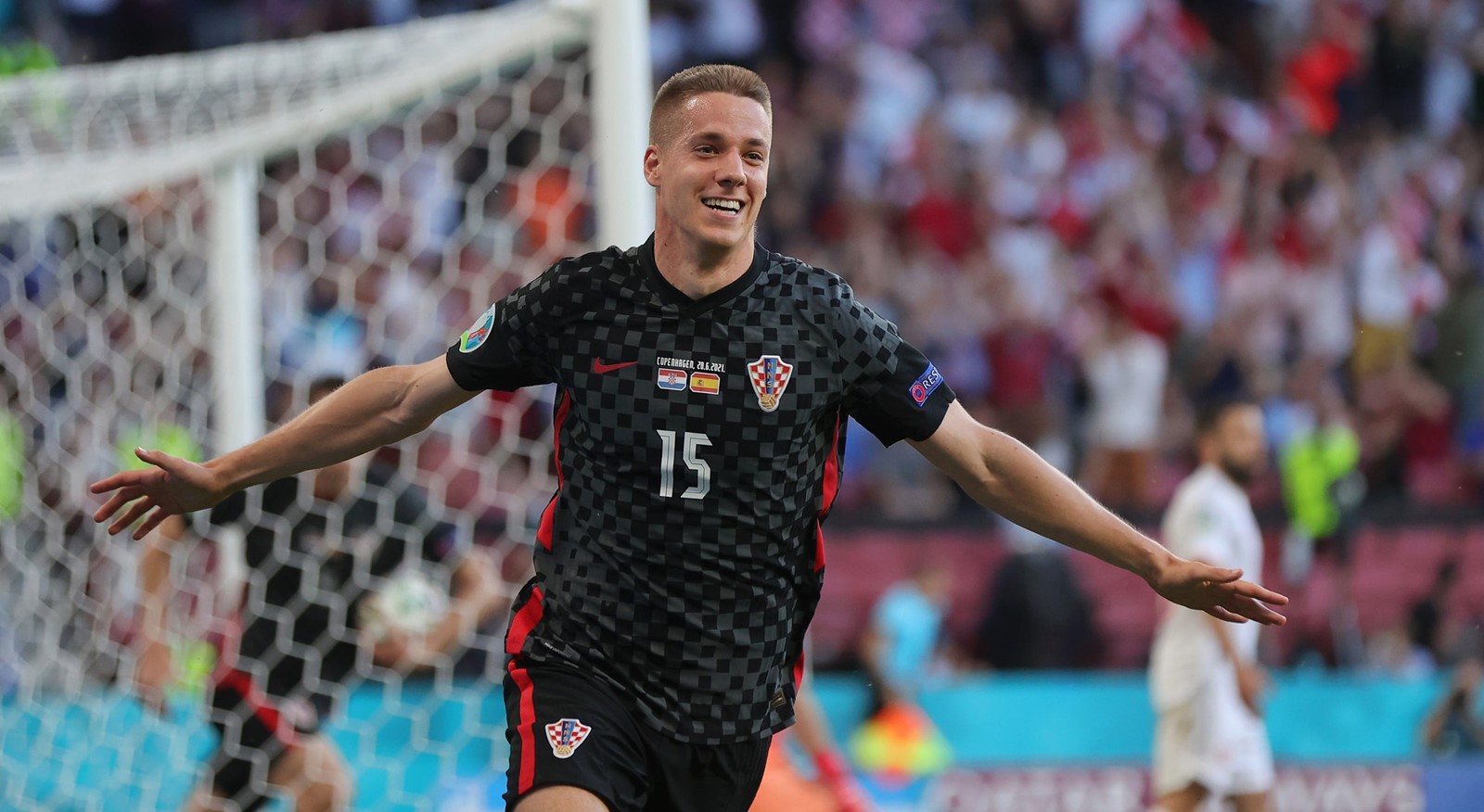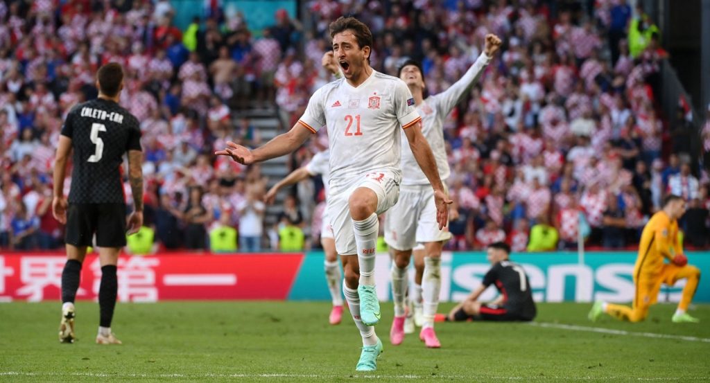 खेलको २० औं मिनेटमा क्रोएसियाले अप्रत्याशित रुपमा अग्रता लियो । स्पेनका मिडफिल्डर पेड्रीले मैदानको बीच भागबाट आफ्नो गोलरक्षक उनाइ सिमोनलाई दिएको पास गोल भएको थियो । बुस्केट्सको लामो पास गोलरक्षक सिमोनको ठिक अगाडी झर्दा उनको बल रोक्ने प्रयास खुट्टालाई छुँदै पोस्टमा छिरेको थियो । युरोको यस संस्करणमा यो नवौं आत्मघाती गोल थियो ।