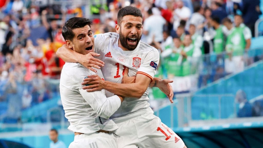 खेलको आठौं मिनेटमा नै स्पेनले अग्रता लिएको थियो । कर्नरमा कोकेको प्रहार पेनाल्टी क्षेत्रमा रहेका सबैलाई बिट गर्दै गएपछि पेनाल्टी क्षेत्र बाहिर रहेका जोर्डी अल्बाले गरेको प्रहार गोल भएको थियो । उनको प्रहार स्विट्जरल्यान्डका डेनिस जाकारियालाई लाग्दै पोस्टतर्फ गएपछि गोलरक्षक यान सोमरले उक्त प्रहार रोक्ने कुनै अवसर नै पाएनन् ।
