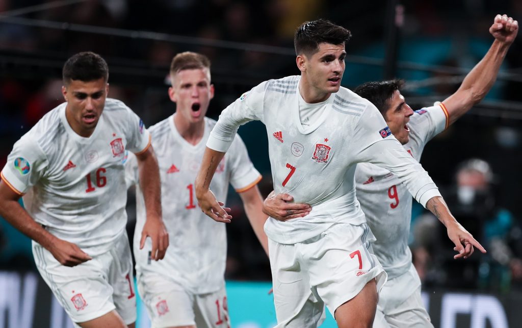 इटालीले एकातर्फ गोलको अवसर सदुपयोग गर्न नसक्दा लगत्तै अर्को तर्फ स्पेनले बराबरी गोल फर्कायो । वैकल्पिक खेलाडीका रुपमा मैदान प्रवेश गरेका फरवार्ड अल्भारो मोराटाले सुन्दर गोल गर्दै खेल १-१ को स्थितिमा ल्याएका थिए । उनले पेनाल्टी क्षेत्रको बाहिरबाट ड्यानी ओल्मोसँग वन टु पास साट्दै पेनाल्टी क्षेत्रभित्र छिरेर गोलरक्षक डोनारुम्मालाई सहजै बिट गरेका थिए ।