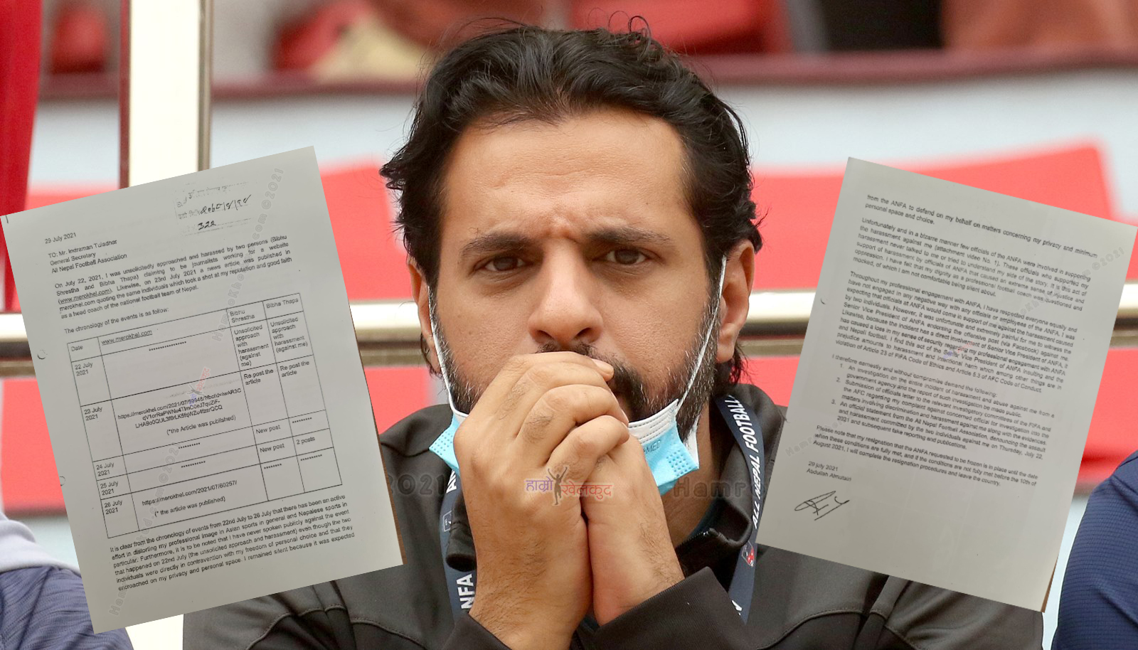 दुई व्यक्तिले लगातार एकपक्षीय रुपमा एसियाली फुटबल र नेपाली समर्थकमाझ आफ्नो छवी धुमिल्याउने प्रयास गरेको अलमुताइरीको दावी छ । उनले आफ्नो व्यक्तिगत स्वतन्त्रताको हनन गर्दै दुई जनाले निजी विषयमा दखल दिएको बताएका छन् । अलमुताइरीले एन्फाले यस विषयमा आफ्नो धारणा राख्ने आशाका साथ आफू शान्त रहेपनि ठिक विपरित रहेको लेखेका छन् ।