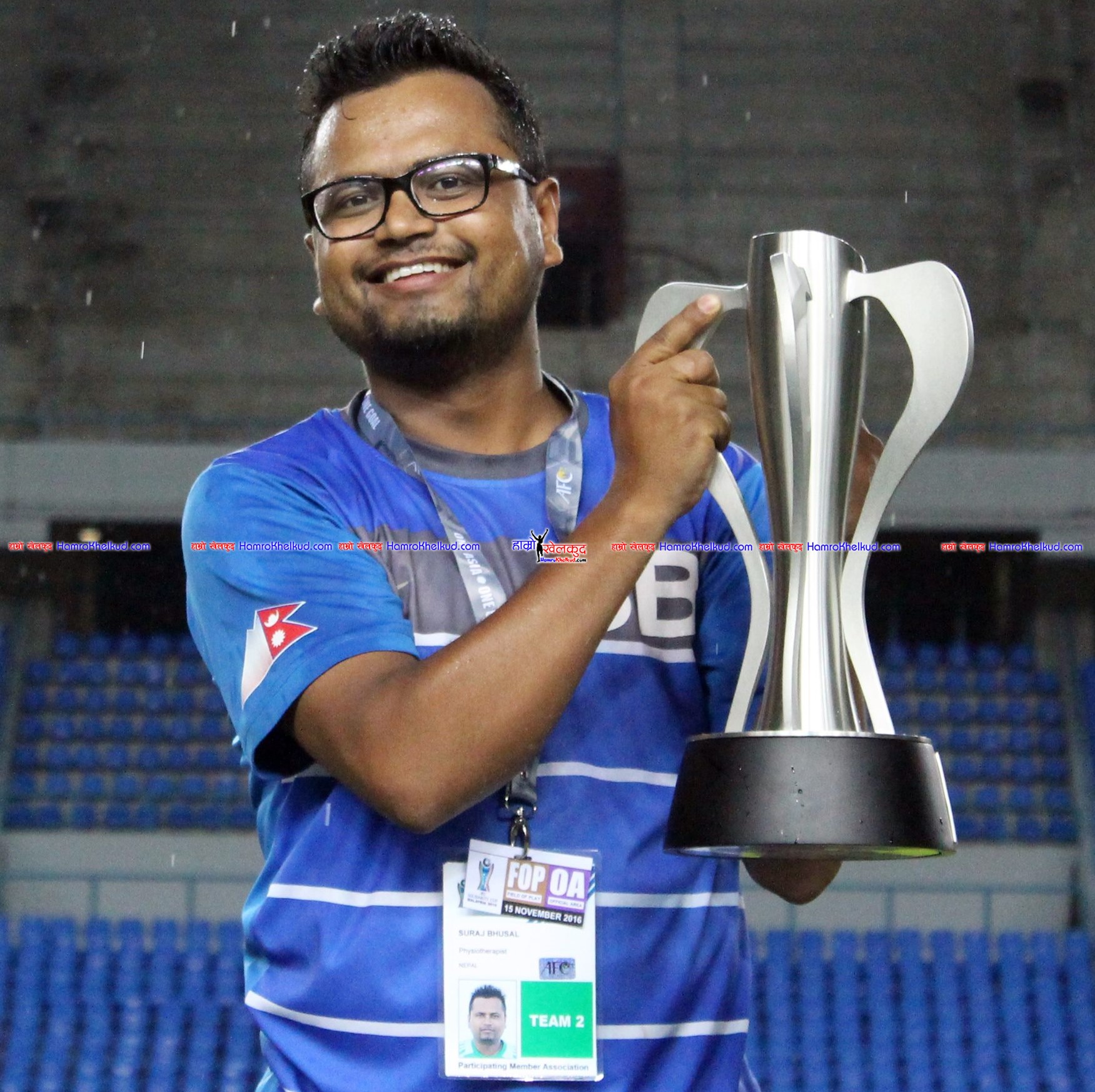 काठमाडौं (हाम्रो खेलकुद)– राष्ट्रिय फुटबल टोलीका पूर्व फिजियोथेरापिष्ट सुरज भुसाल सहिद स्मारक ए डिभिजन लिगका लागि फेरि पनि मछिन्द्र क्लबमा आबद्ध भएका छन् । दुई वर्षअघि मछिन्द्रले पहिलो पटक लिग जित्दा पनि भुसाल टोलीको फिजियोथेरापिष्ट थिए ।