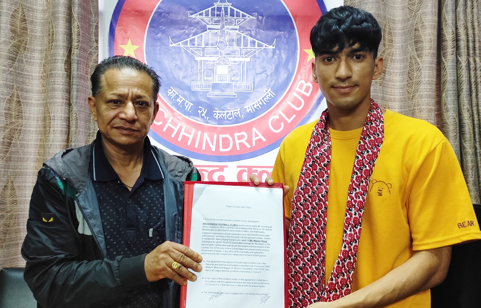 काठमाडौं (हाम्रो खेलकुद) – नेपाली राष्ट्रिय फुटबल टोलीका युवा फरवार्ड मनिष डाँगीले ए डिभिजन लिगको च्याम्पियन मछिन्द्र क्लबबाट खेल्ने भएका छन् । मनिषले आइतबार मछिन्द्रसँग औपचारिक रुपमा सम्झौता गरेको क्लबले जनाएको छ ।